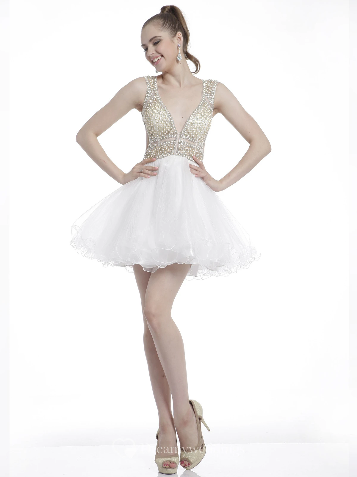 A-Line Mini V-Neck Sleeveless Dress With Ruffles And Beading