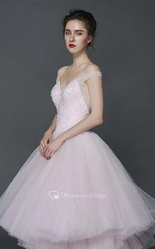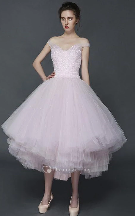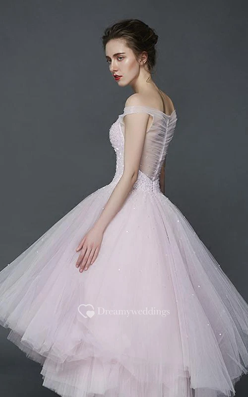 A-Line Off-the-Shoulder Beading Pleats Asymmetry Prom Dress