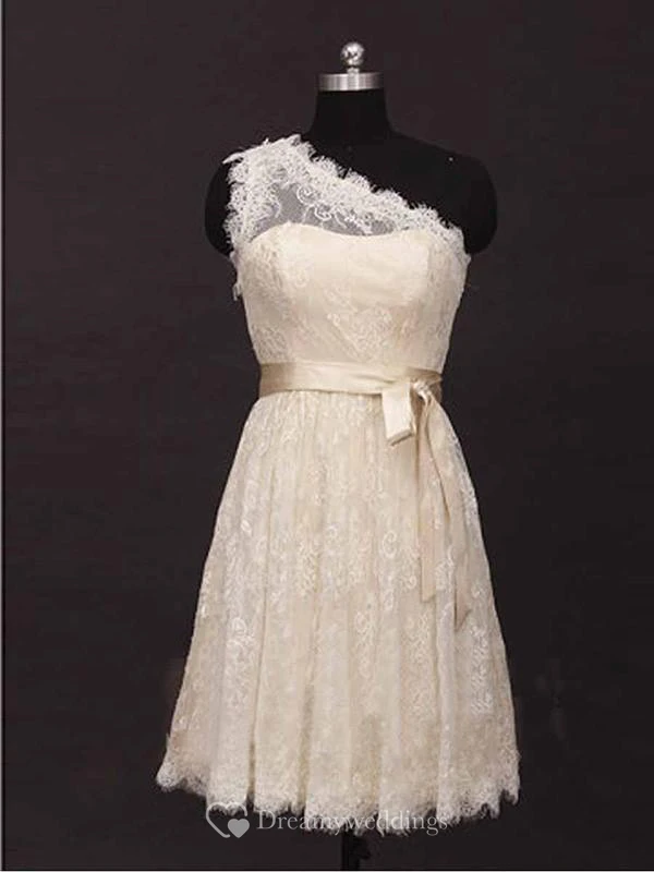 A-line One-Shoulder Sleeveless Lace Short Dresses