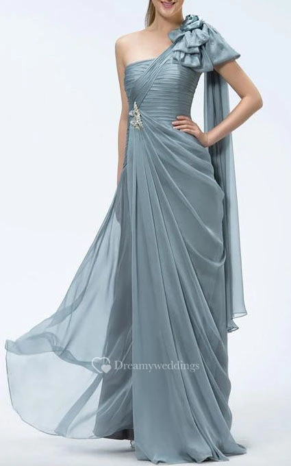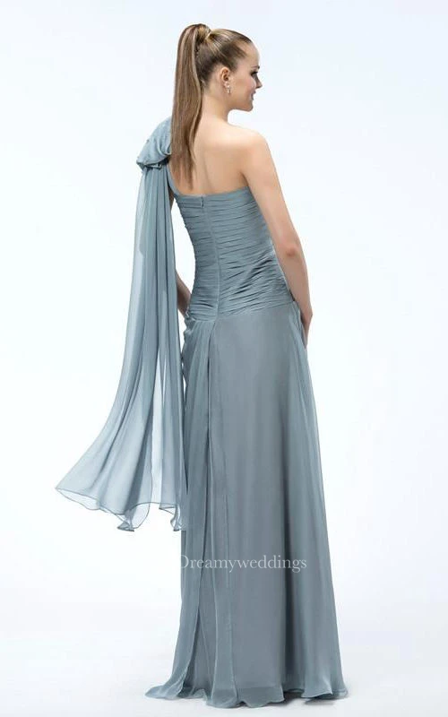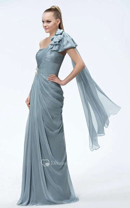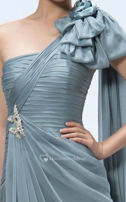 A-Line One-Shoulder Tiered Beading Sashes Floor-length Prom Dress