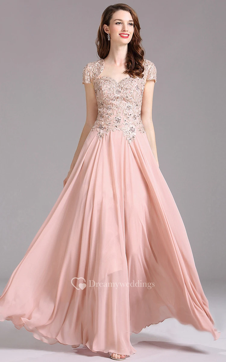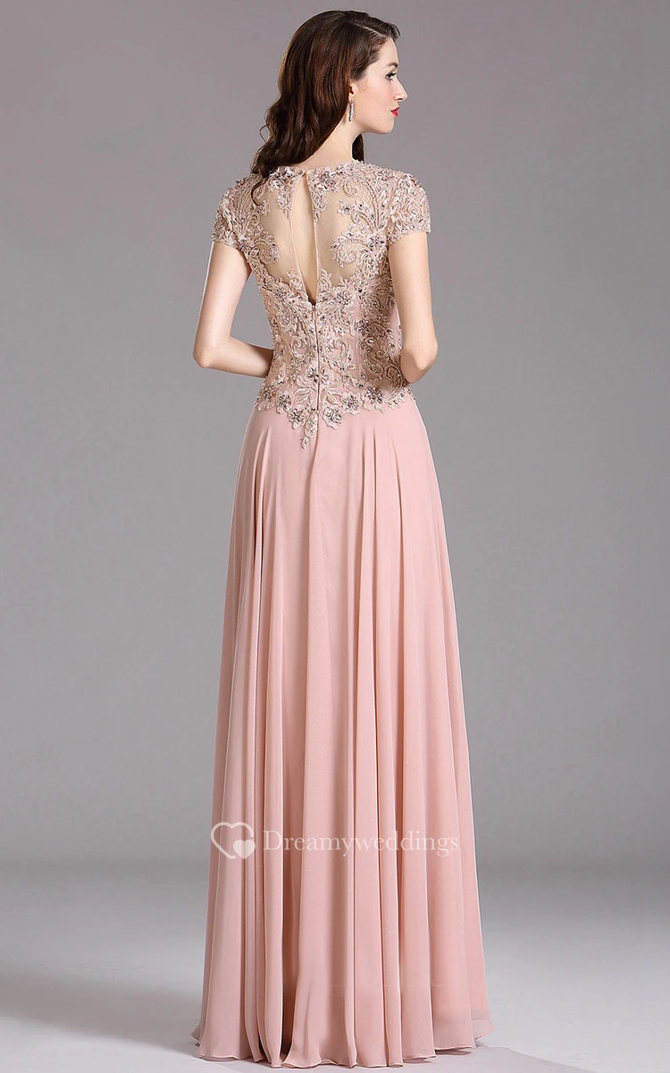 A-Line Queen Anne Short Sleeve Chiffon Appliques Keyhole Dress