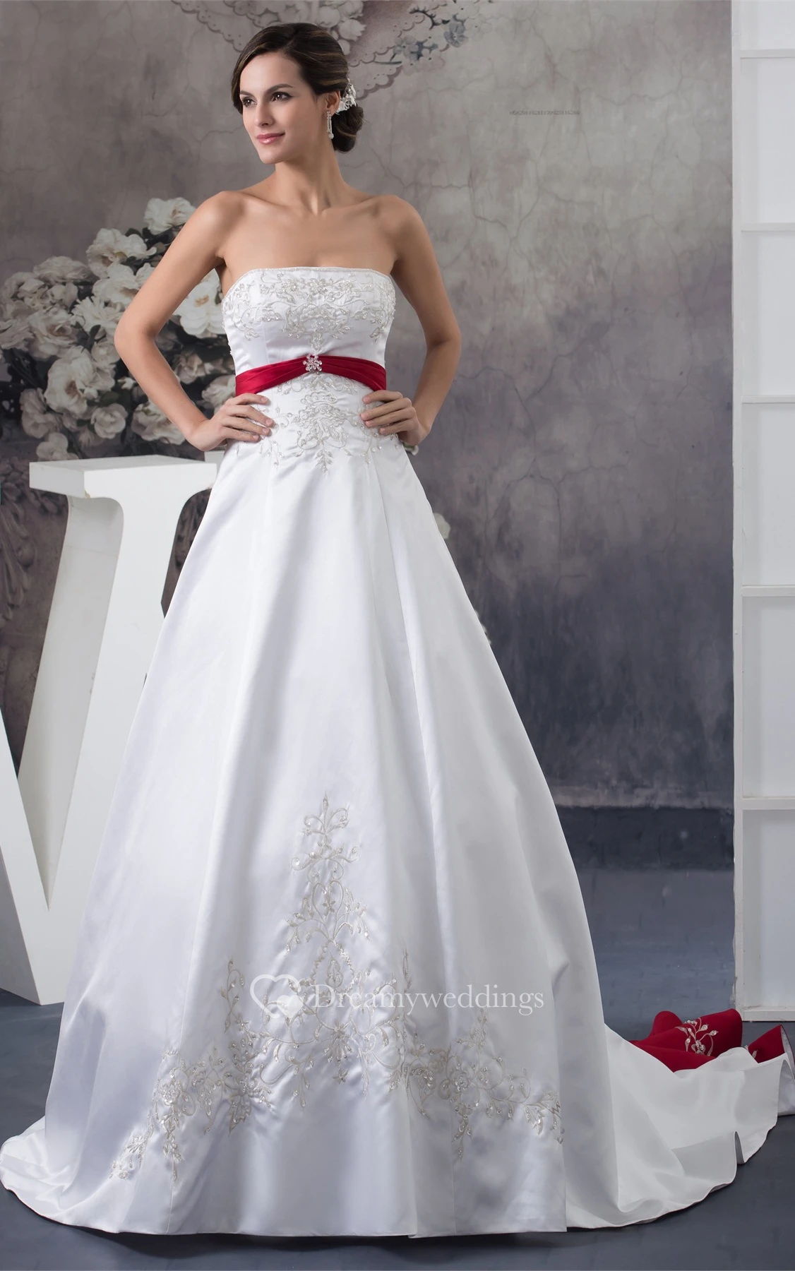 A-Line Satin Broach and Ball-Gown With Embroideries