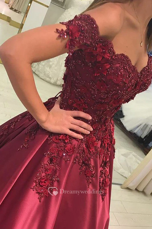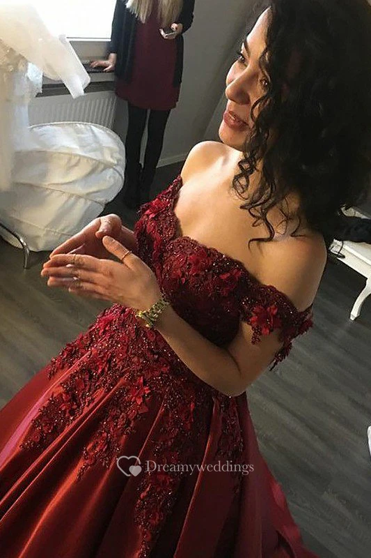 A-Line Satin Lace Off-the-shoulder Short Sleeve Zipper Dress