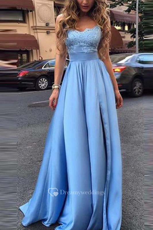 A-Line Satin Lace Sweetheart Sleeveless Zipper Dress