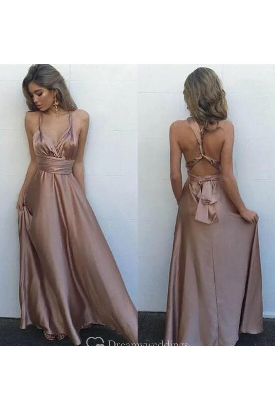 A-Line Satin Spaghetti Sleeveless Straps Dress