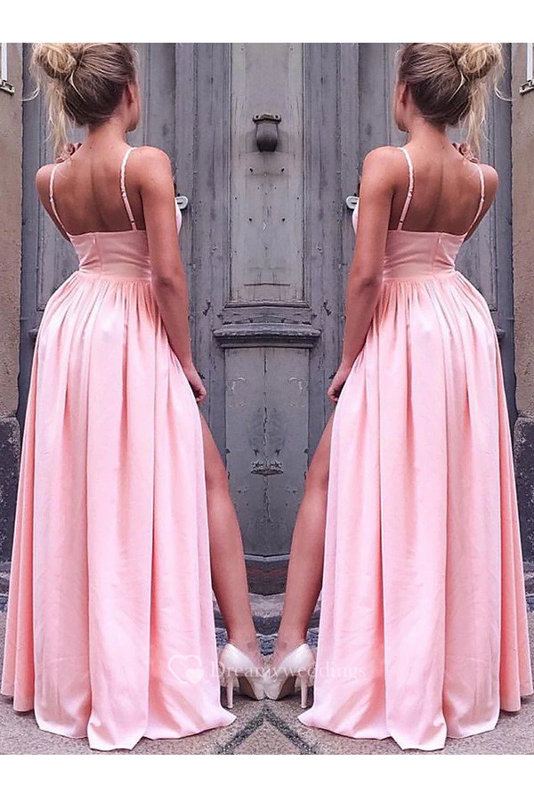 A-Line Satin Spaghetti Sleeveless Zipper Dress