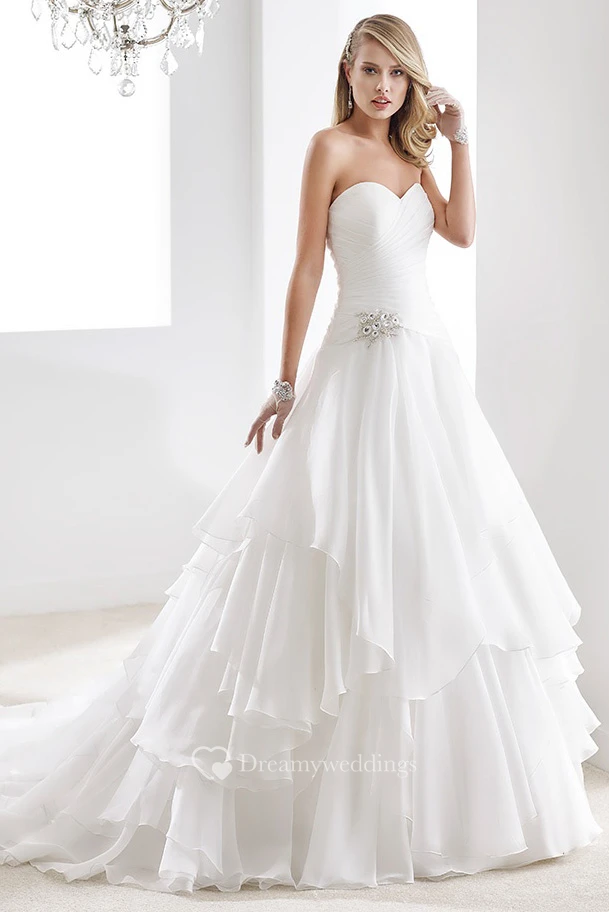 A-Line Chiffon Wedding Dress With Illusive Neckline And Beading Waist