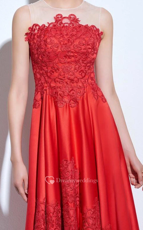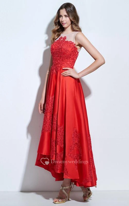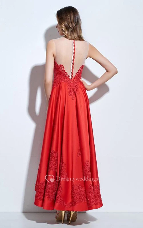 A-Line Scoop Appliques Ankle-Length Prom Dress