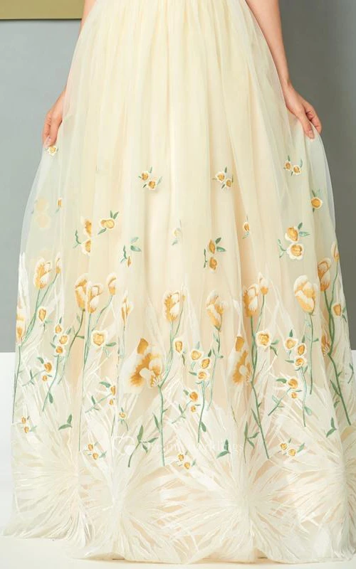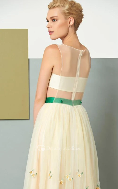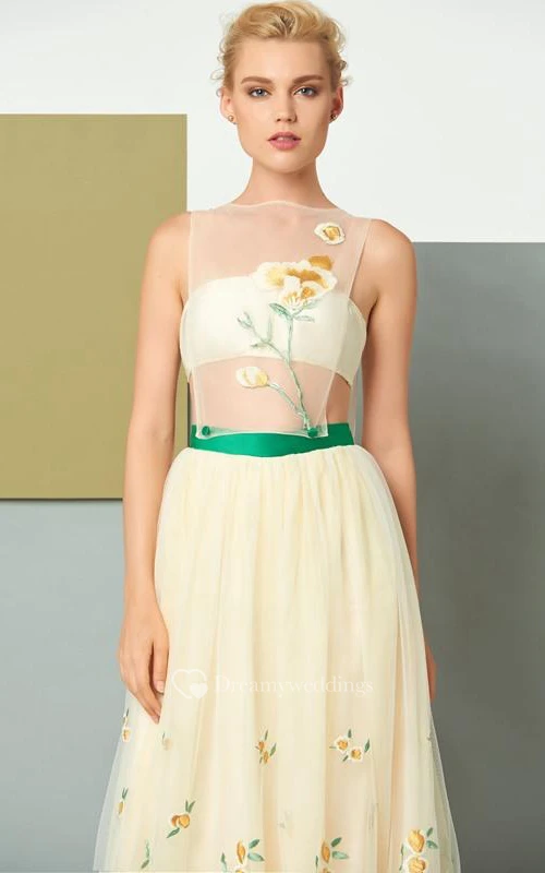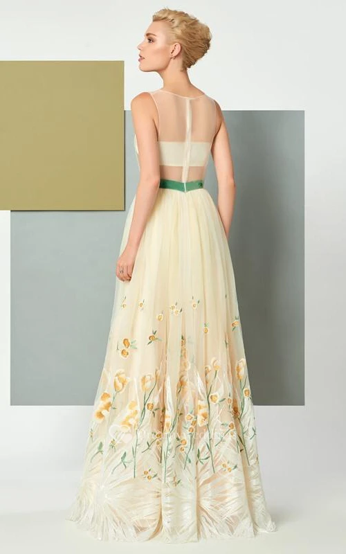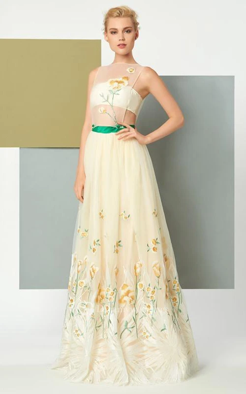 A Line Scoop Neck Sleeveless Embroidery Floor Length Evening Dress