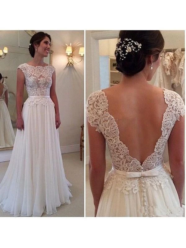 A-line Scoop Sleeveless Applique Floor-Length Chiffon Dresses