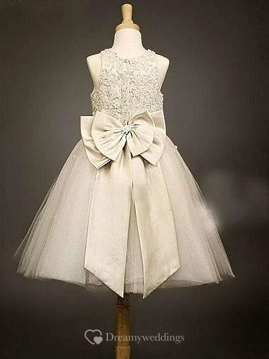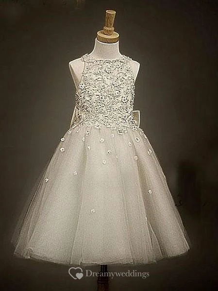 A-line Scoop Sleeveless Bowknot Ankle-length Organza Flower Girl Dresses