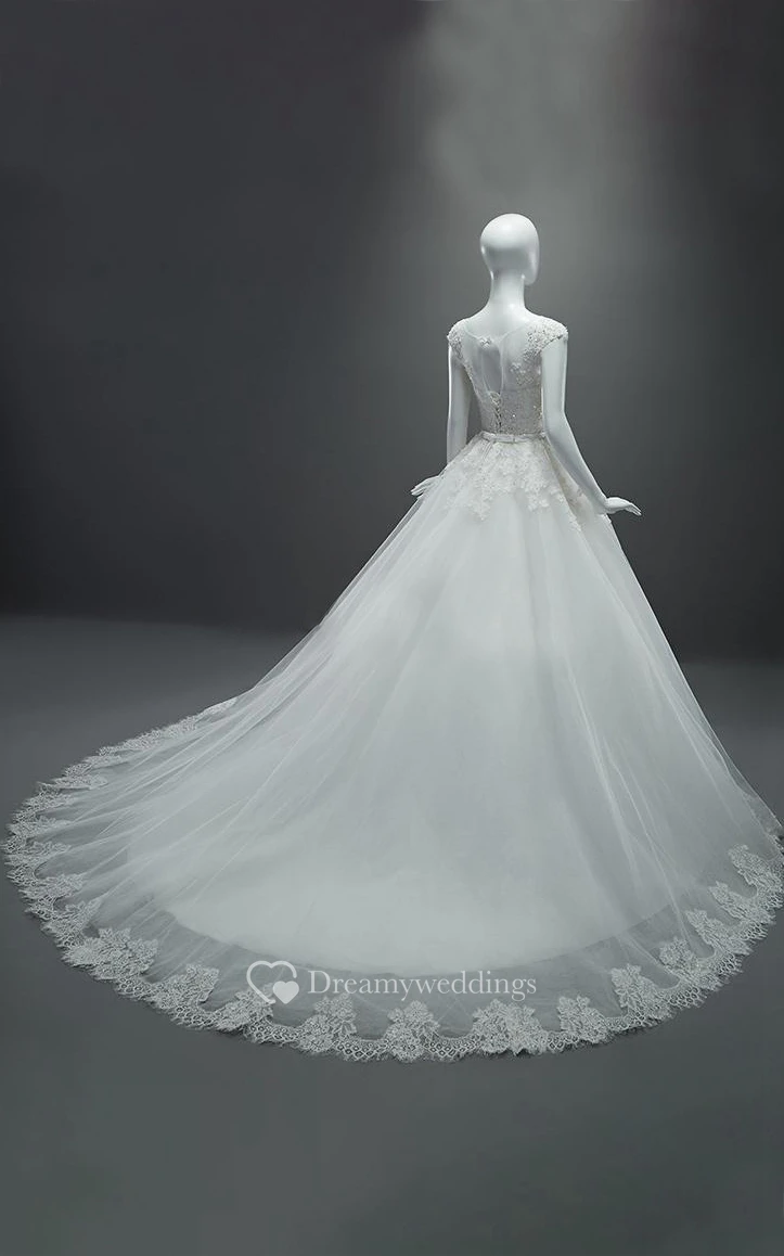 A-Line Scoop Sleeveless Cap Beading Tulle Dress