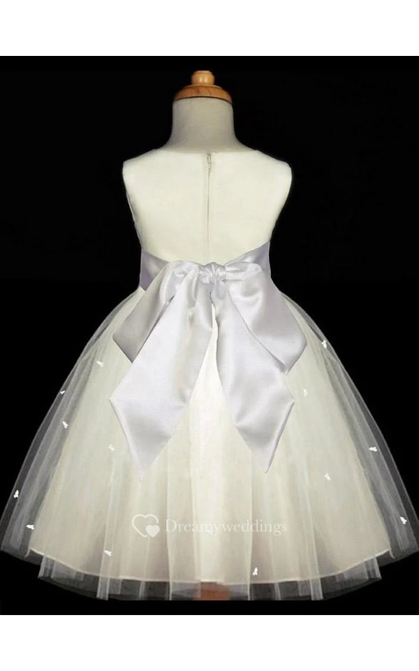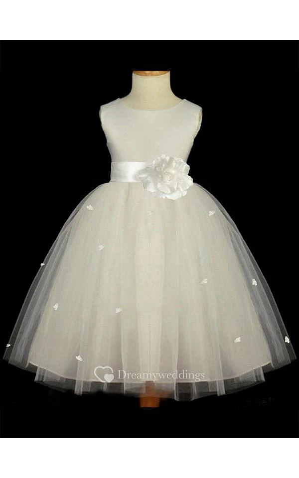 A-line Scoop Sleeveless Hand-made Flower Floor-length Tulle Flower Girl Dresses