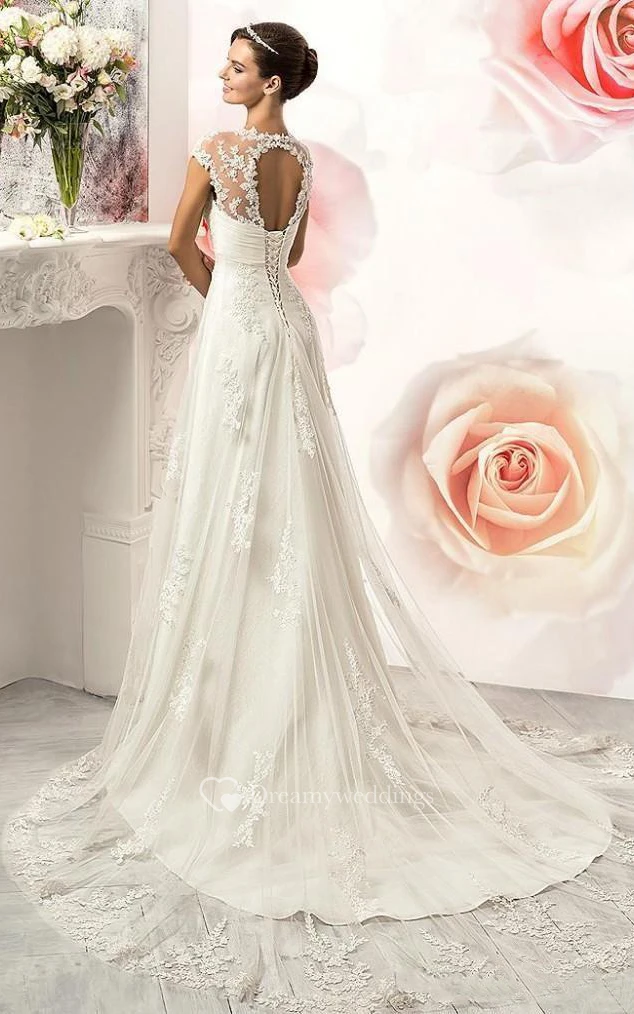 A-Line Sheath Mini Sweetheart Sleeveless Bell Cap Illusion Beading Appliques Illusion Court Train Illusion Lace-Up Back Lace Dress
