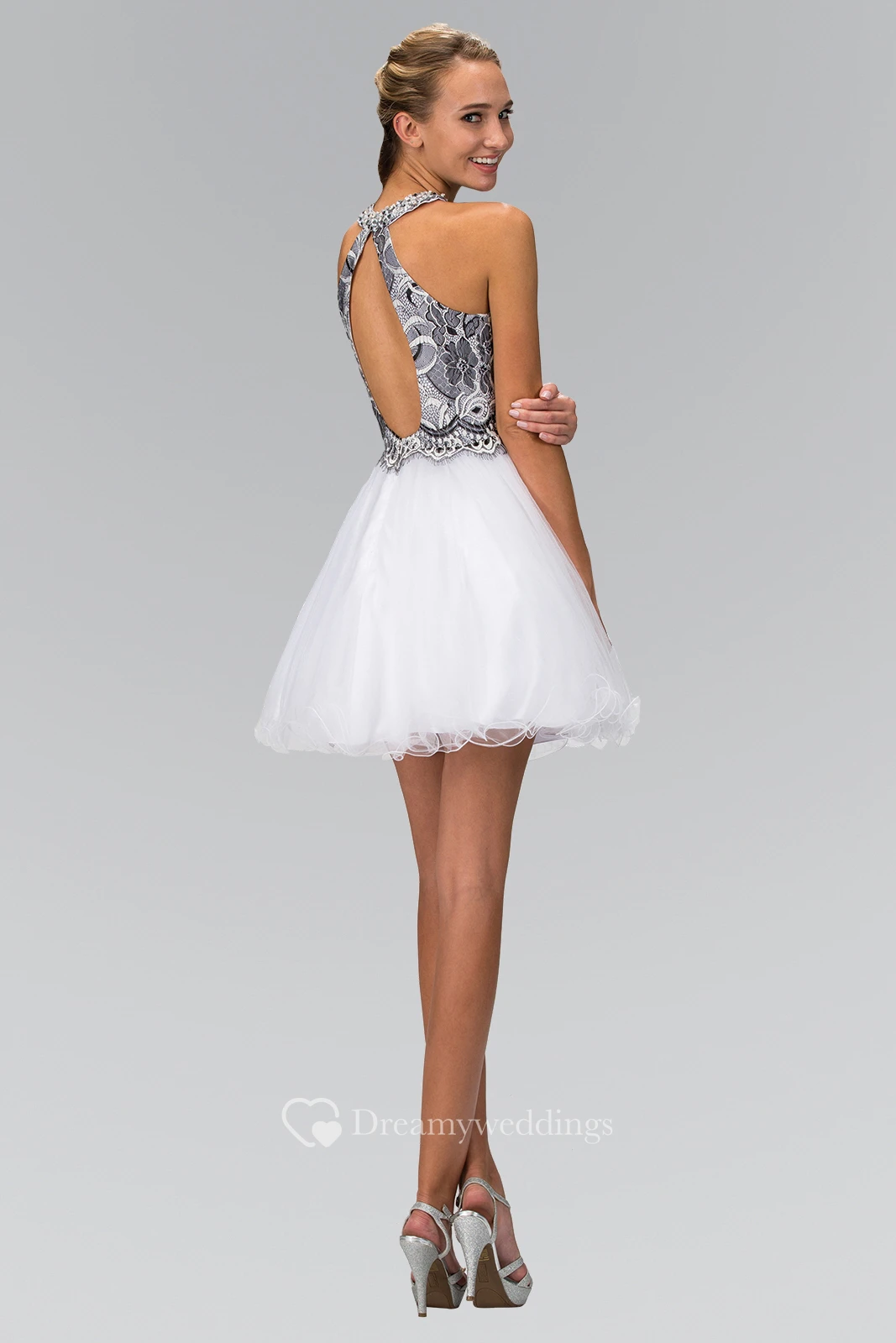 A-Line Short Jewel-Neck Sleeveless Tulle Keyhole Dress With Appliques And Embroidery