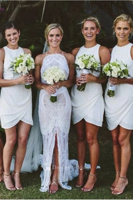 A-line Short Scoop Sleeveless Pleats Chiffon Dress