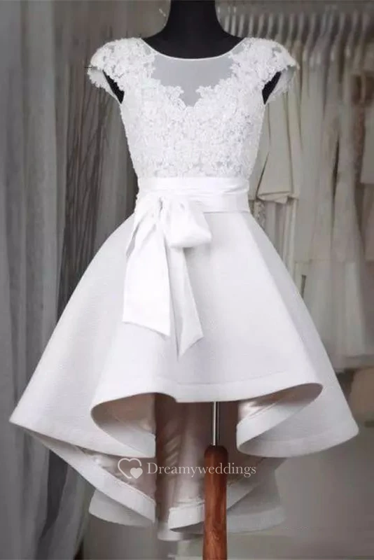 A-line Short Sleeve Satin Lace Bateau High-low Homecoming Dress