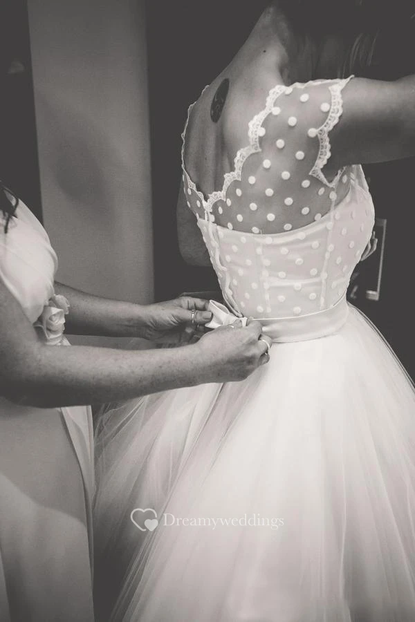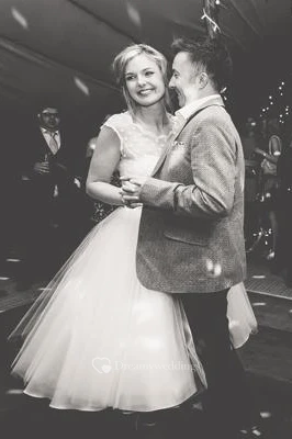 A-Line Short Sleeveless Bell Cap Bat Ribbon Zipper Tulle Lace Dress