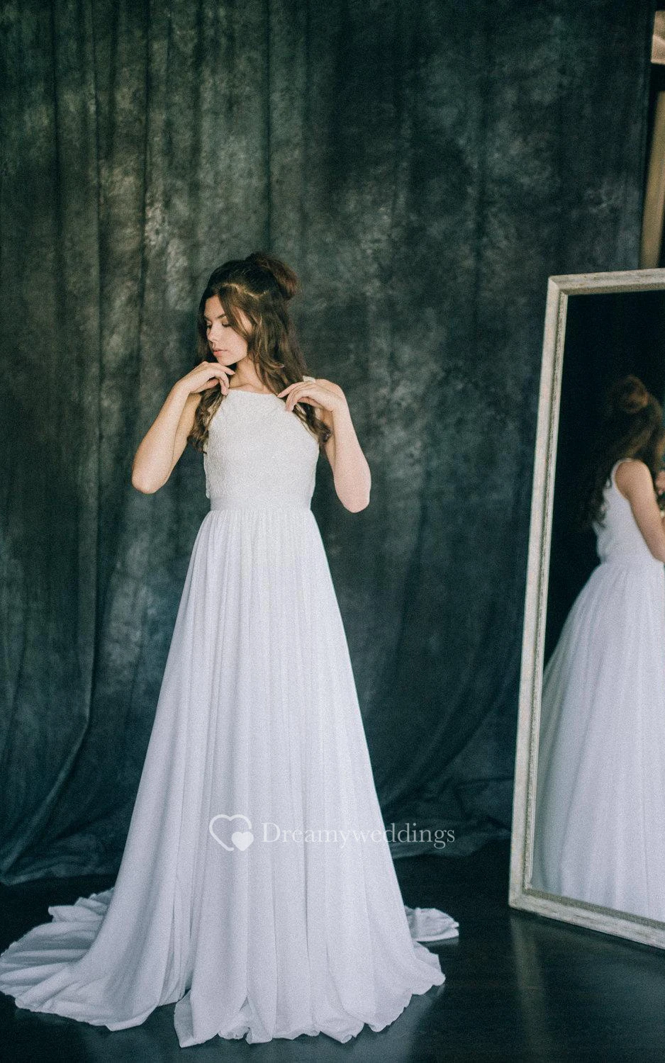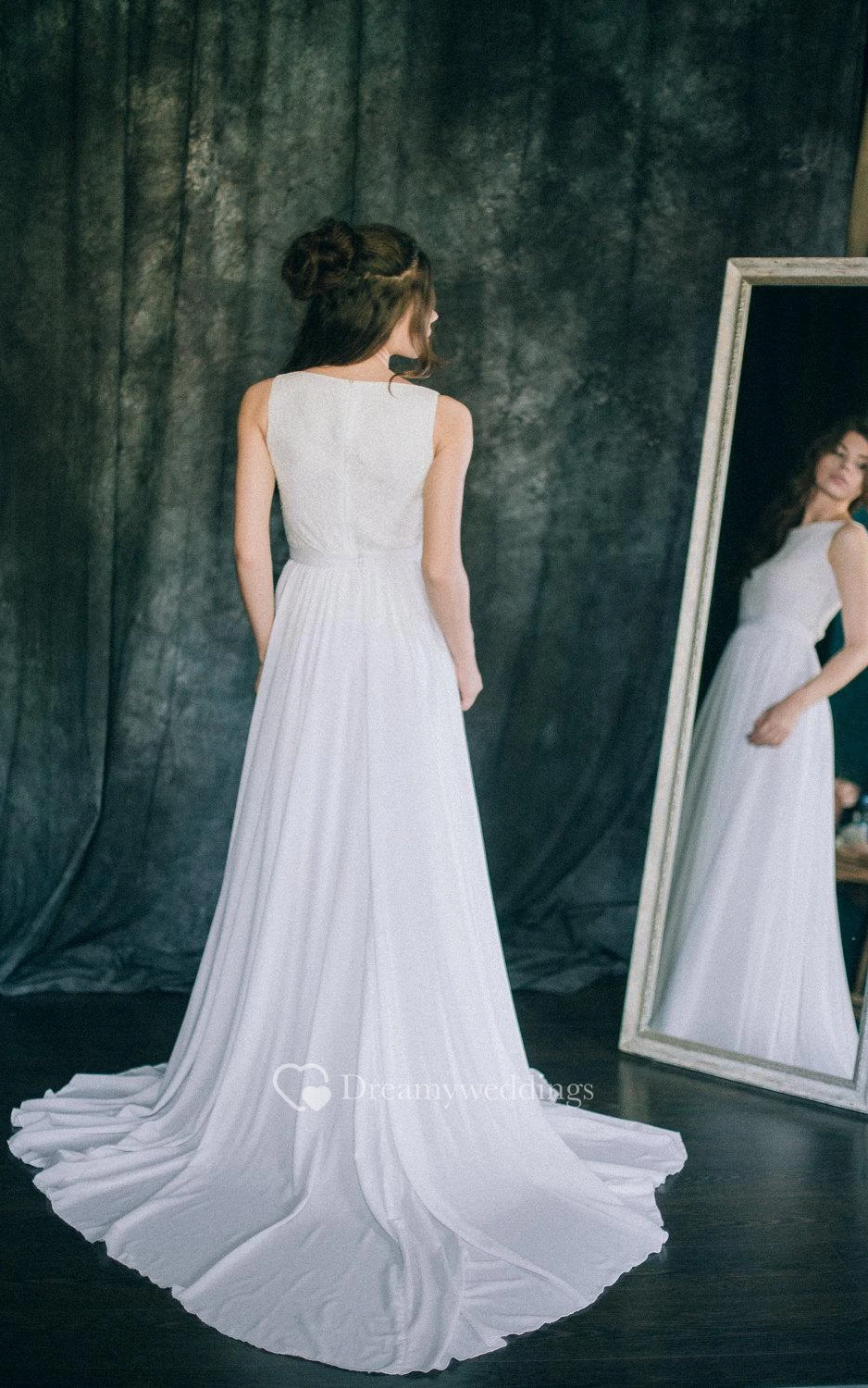 A-Line Short Sleeveless Sleeve Chiffon Lace Satin Dress