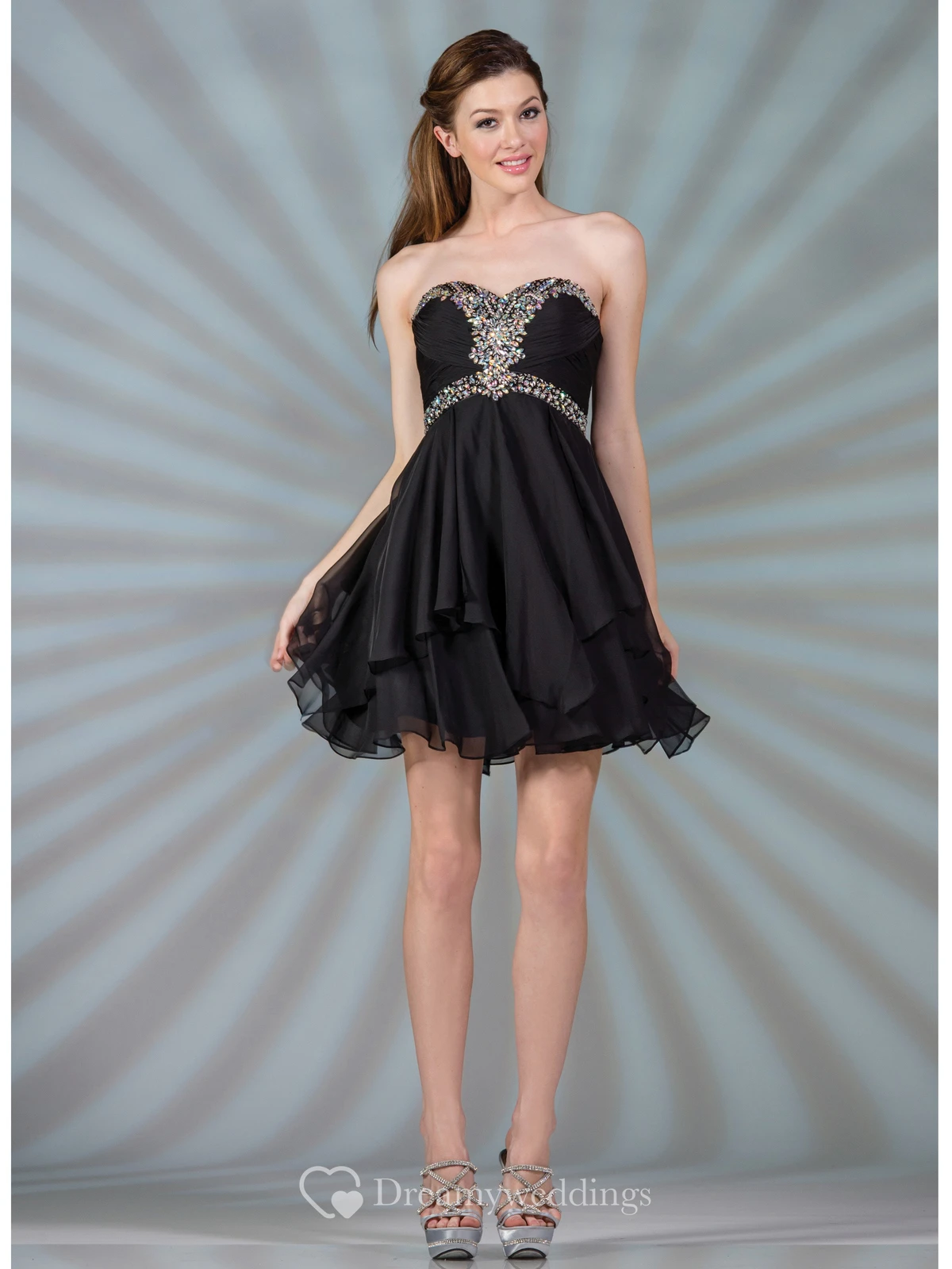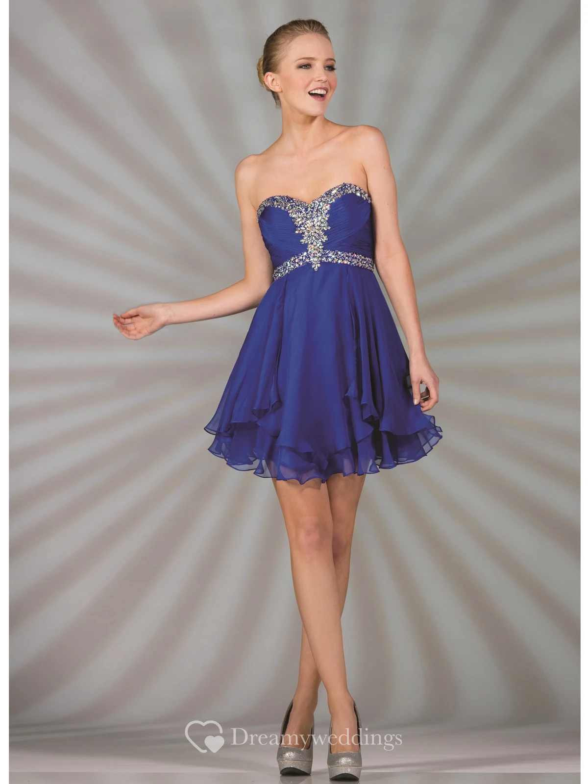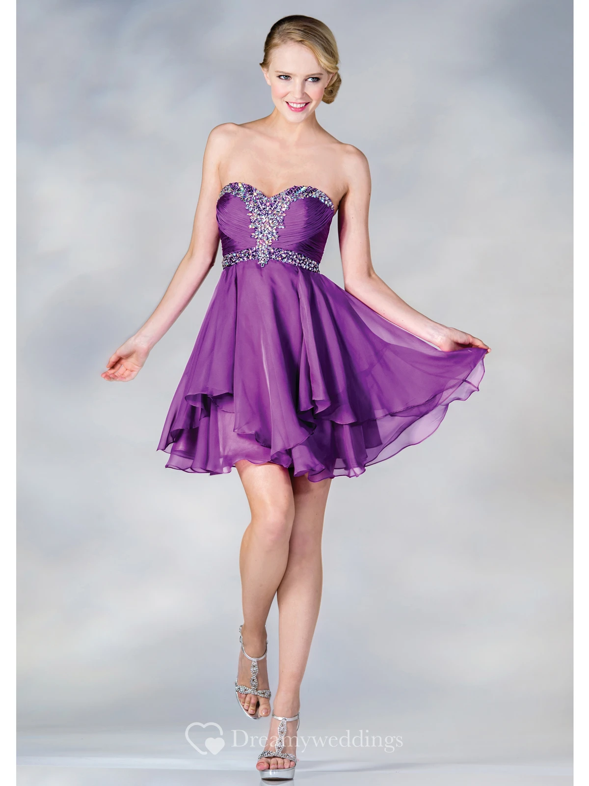 A-Line Short Sweetheart Sleeveless Chiffon Dress With Beading And Draping