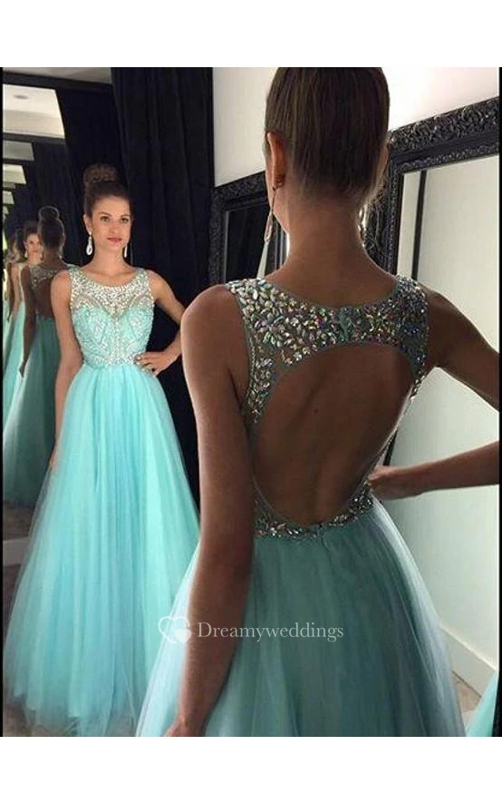 A-line Sleeveless Beading Tulle Floor-Length Floor-Length Dresses