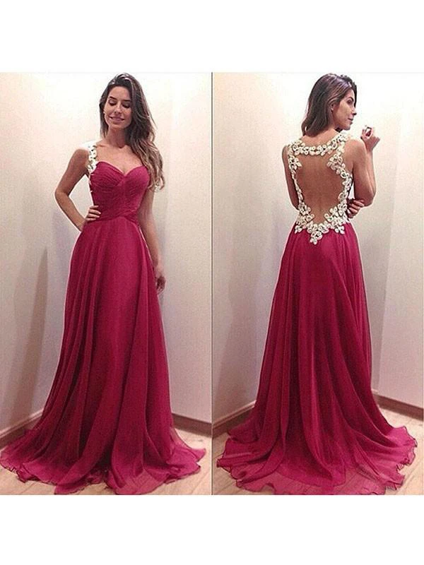 A-line Sleeveless Chiffon Ruched Sweep Train Sweetheart Dresses