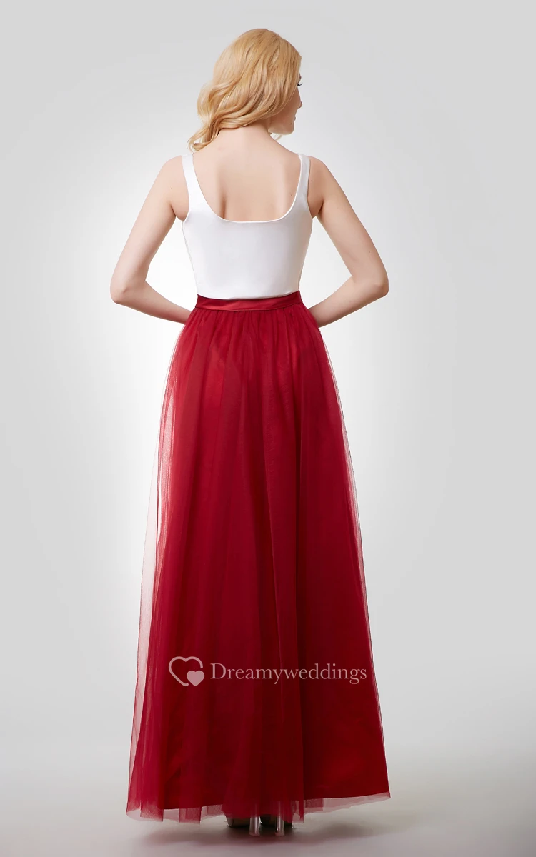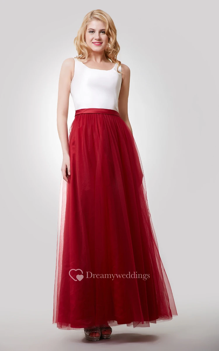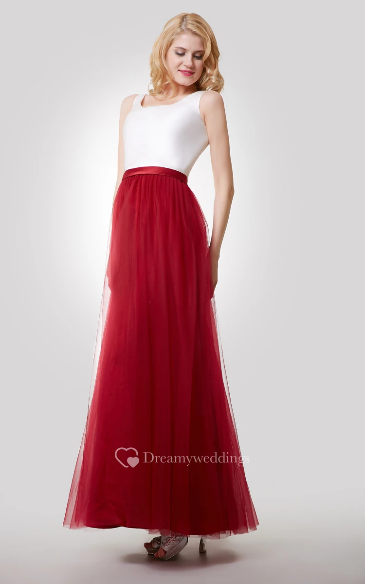A-Line Sleeveless Color Blocking Dress With Tulle Skirt and Bateau Neck
