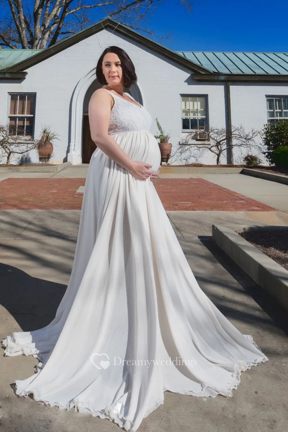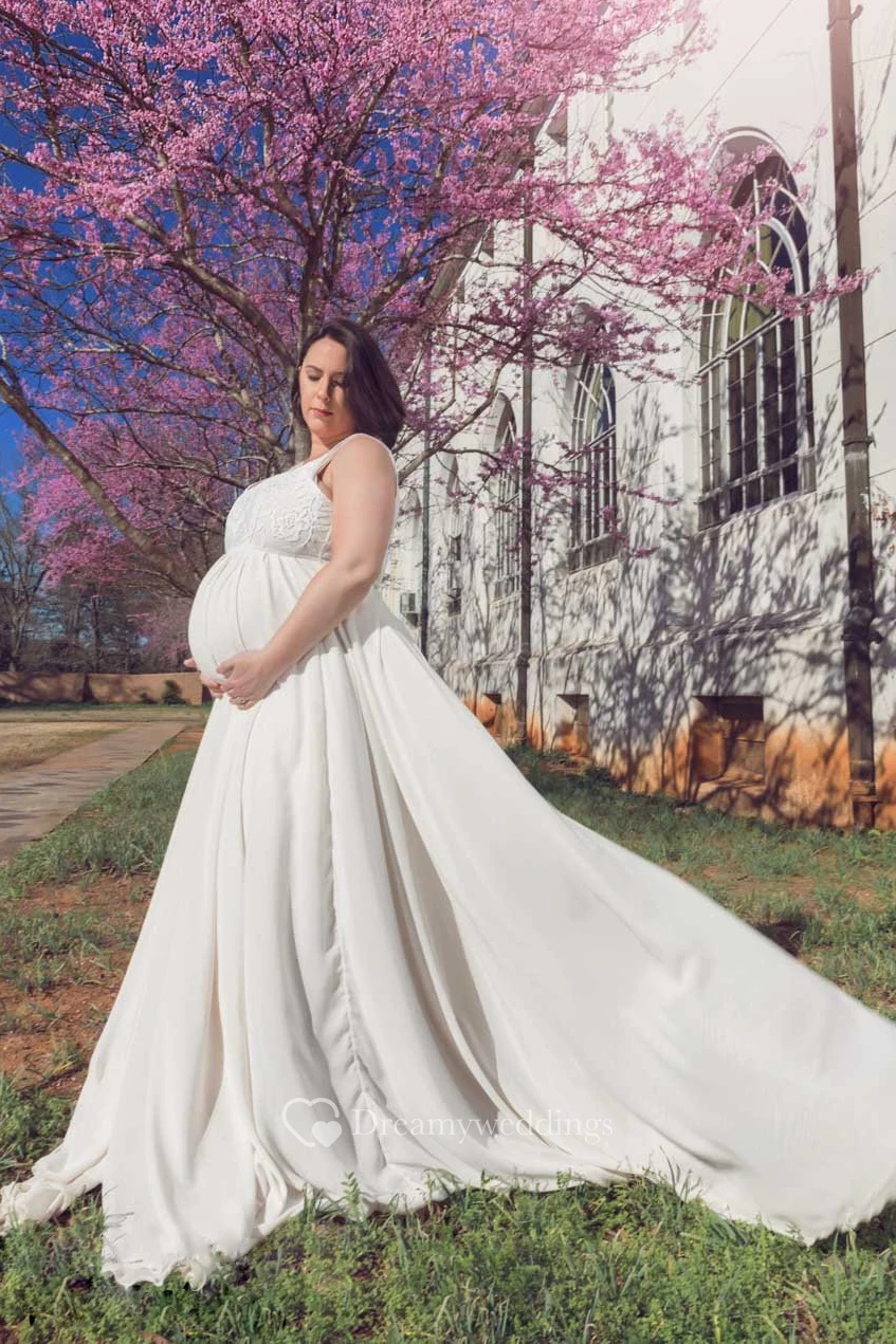 4.It is suggested that you select a dress with empire waist and a lace up back for maternity use.