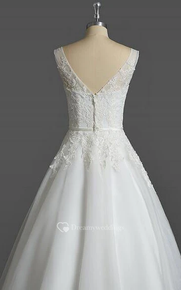A-Line Sleeveless Long Sleeve Beading Flower Keyhole Tulle Lace Sequins Dress