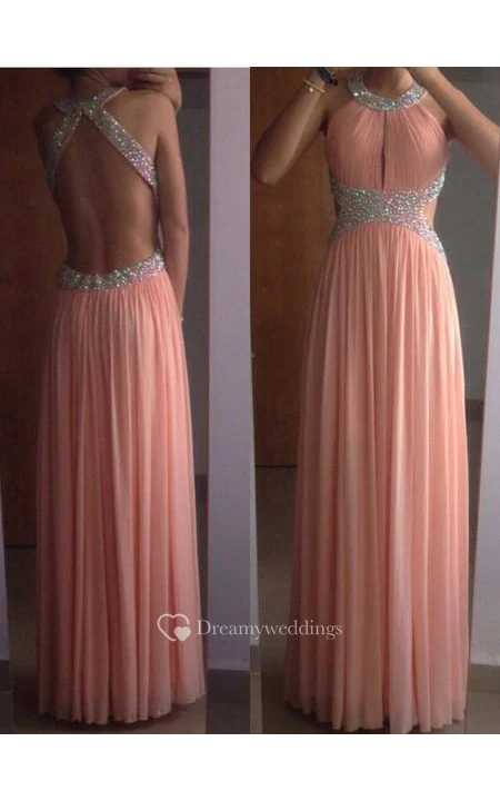 A-line Sleeveless Scoop Chiffon Pleats Floor-Length Dresses