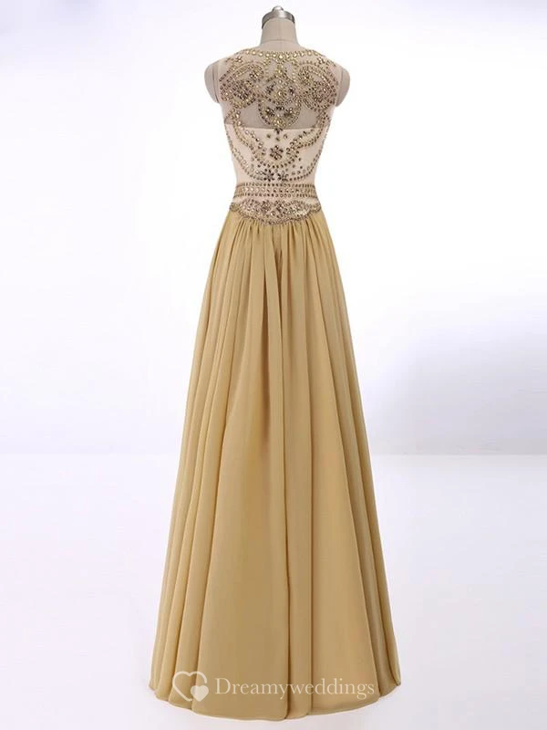 A-line Sleeveless Scoop Crystal Chiffon Floor-Length Dresses