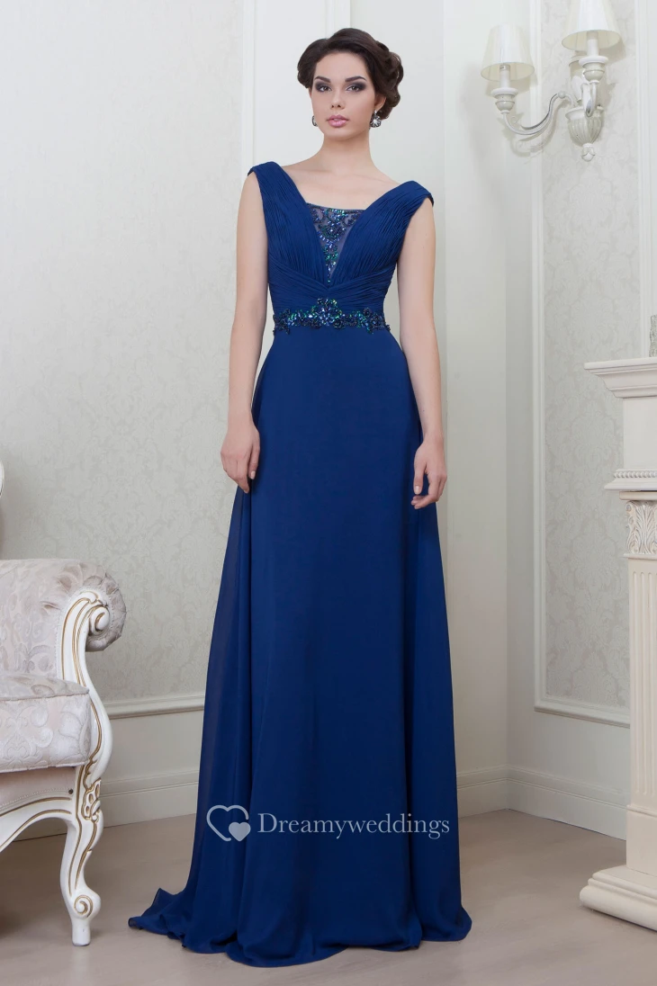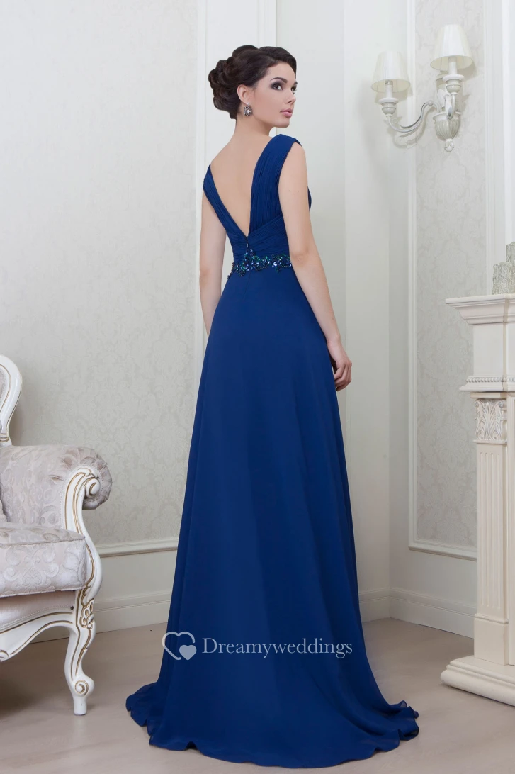 A-Line Sleeveless V-Neck Floor-Length Ruched Chiffon Evening Dress With Beading