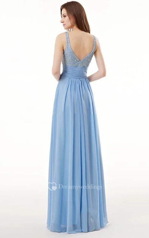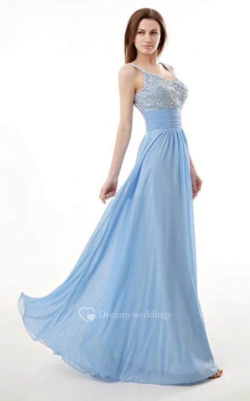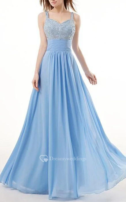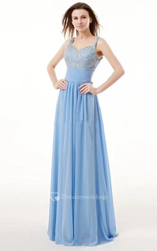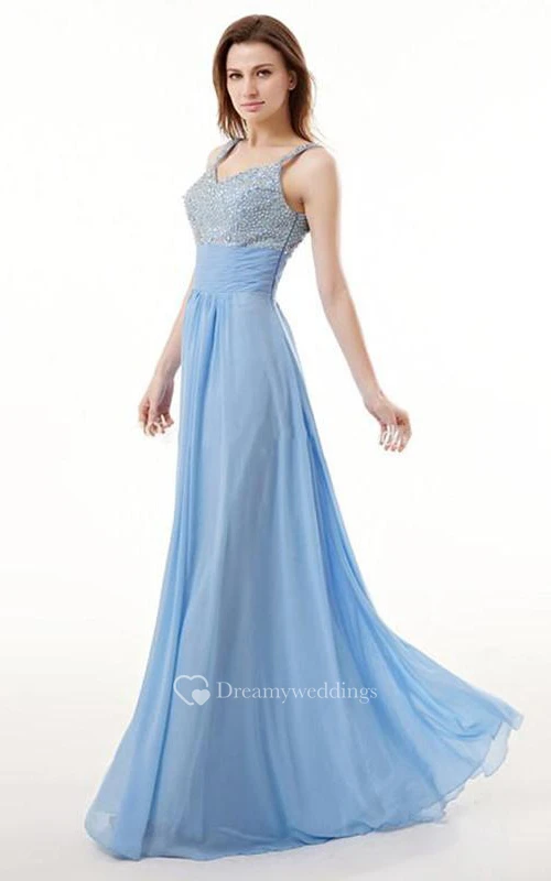 A-Line Spaghetti Neck Beading Floor-Length Prom Dress