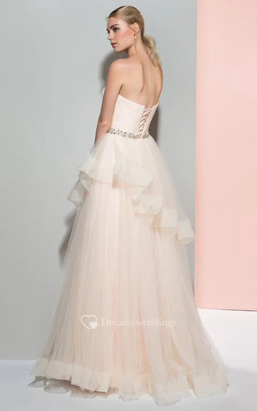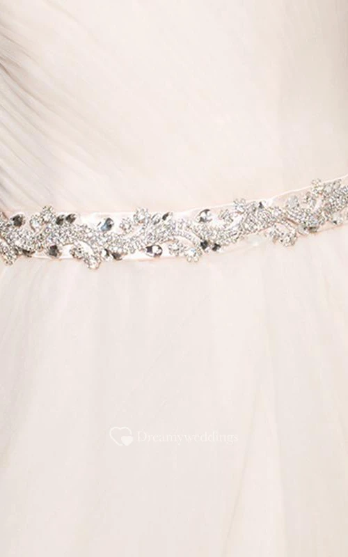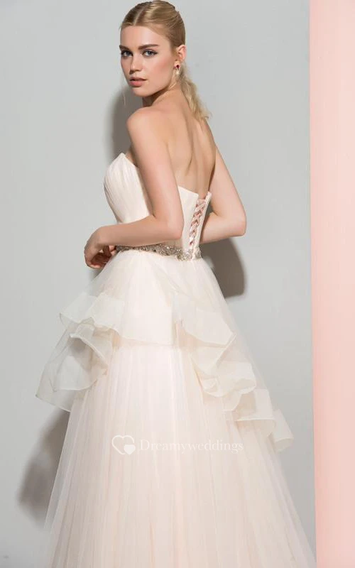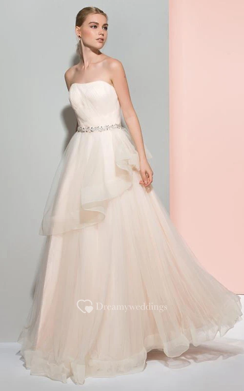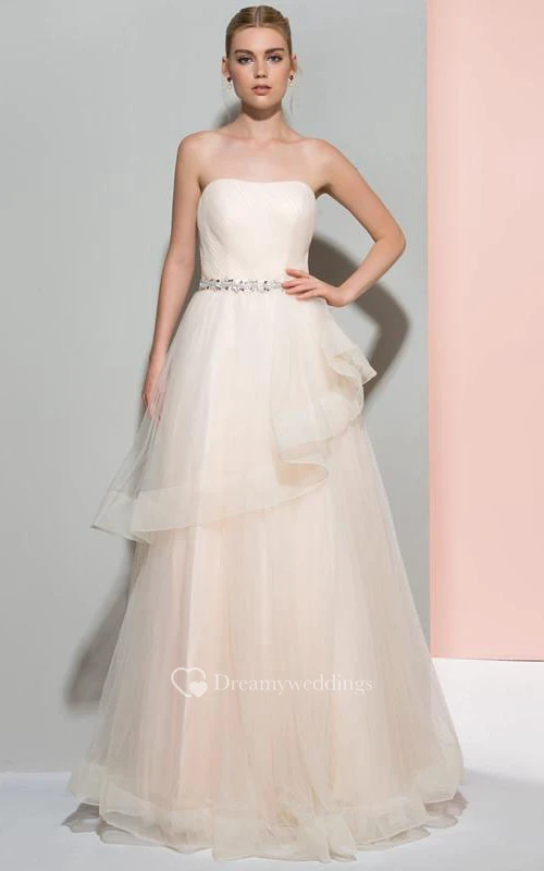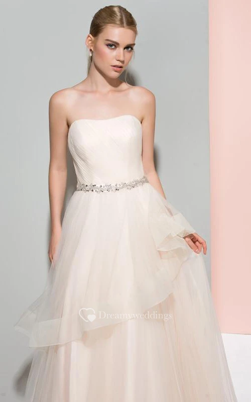 A-Line Strapless Beaded Ruched Long Prom Dress