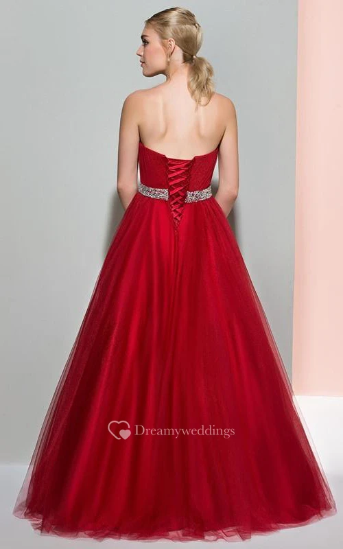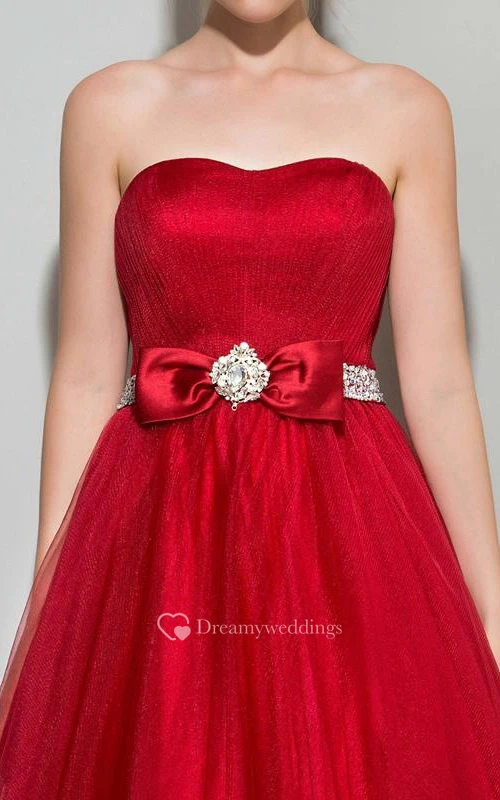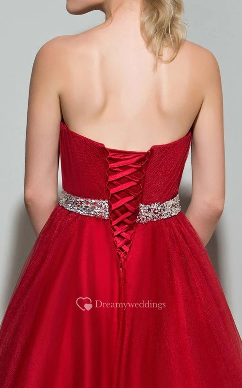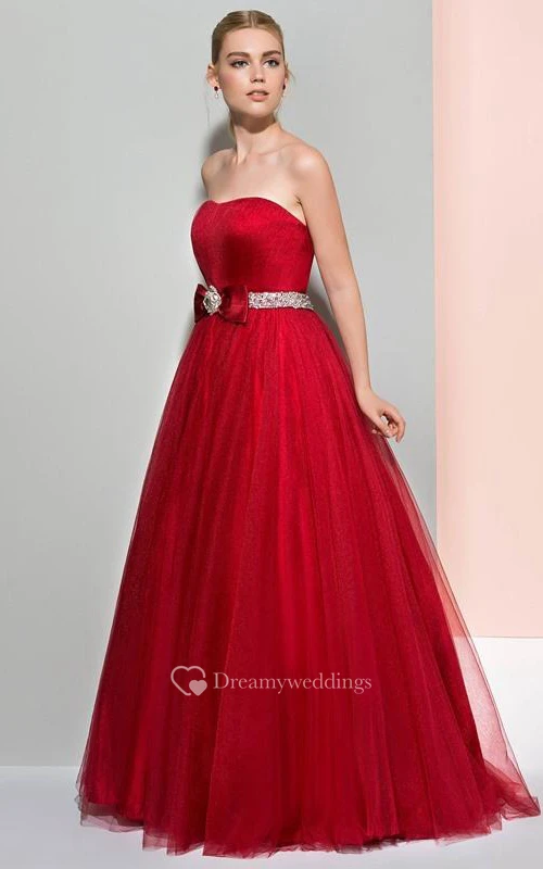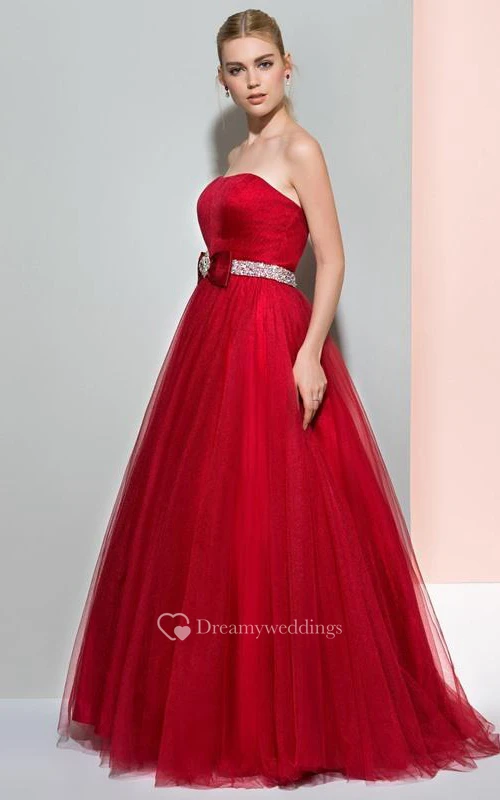 A-Line Strapless Beaded Ruffles Logn Prom Dress