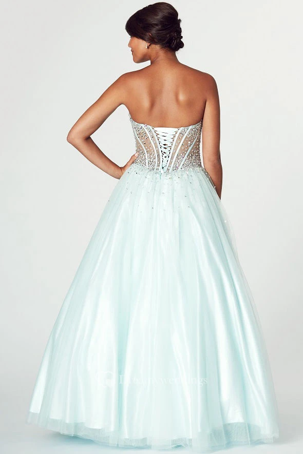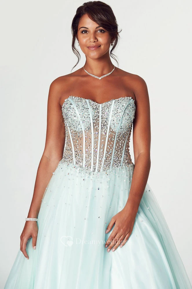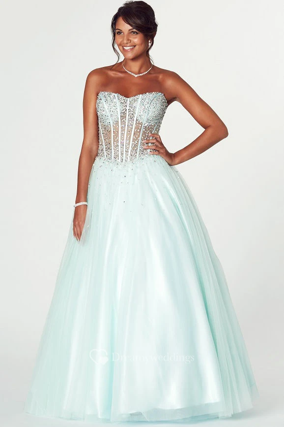 A-Line Strapless Beaded Tulle Prom Dress With Lace-Up Back