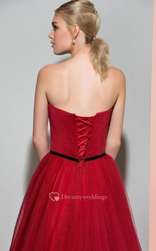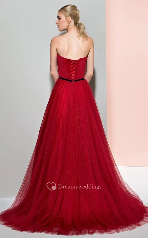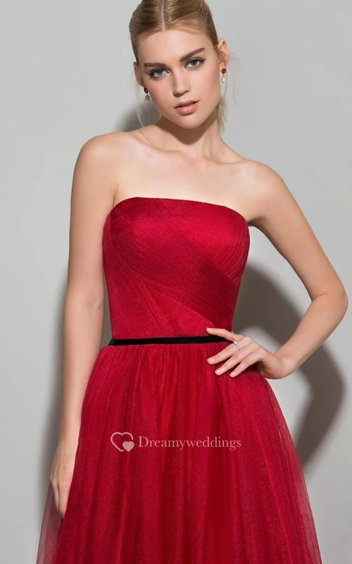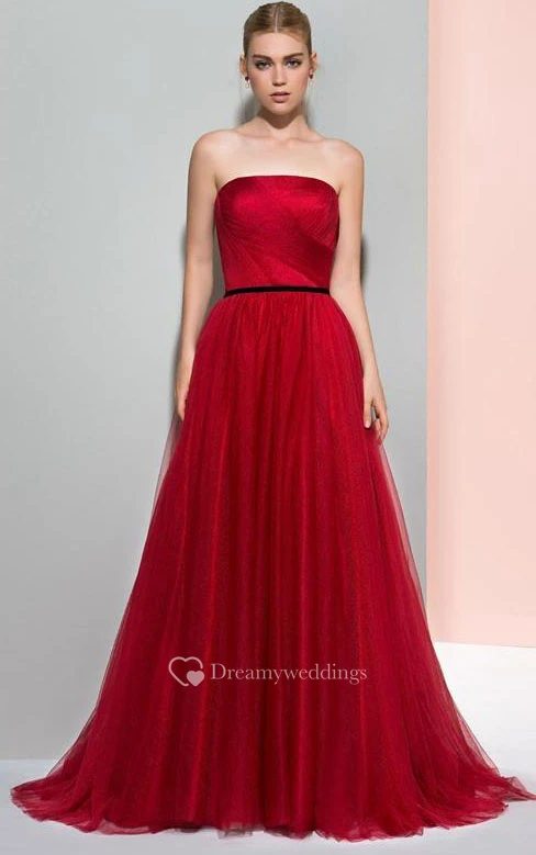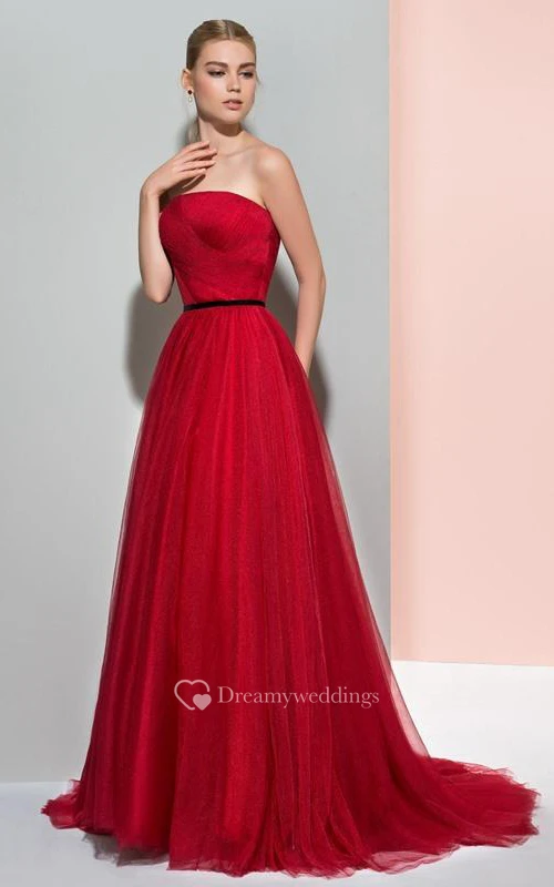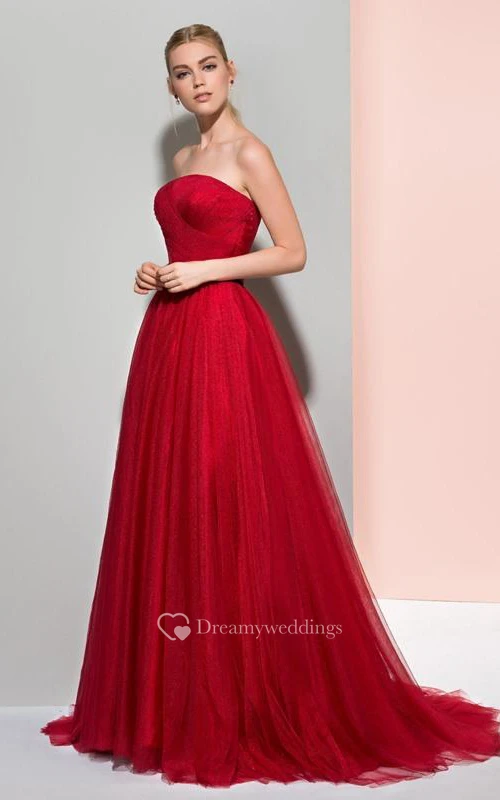 A-Line Strapless Pleats Pleats Court Train Evening Dress