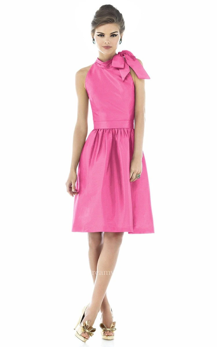 A-Line Stunning-High-Neck Short Dress With Bow