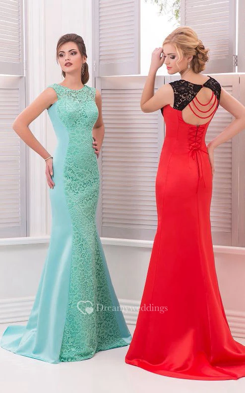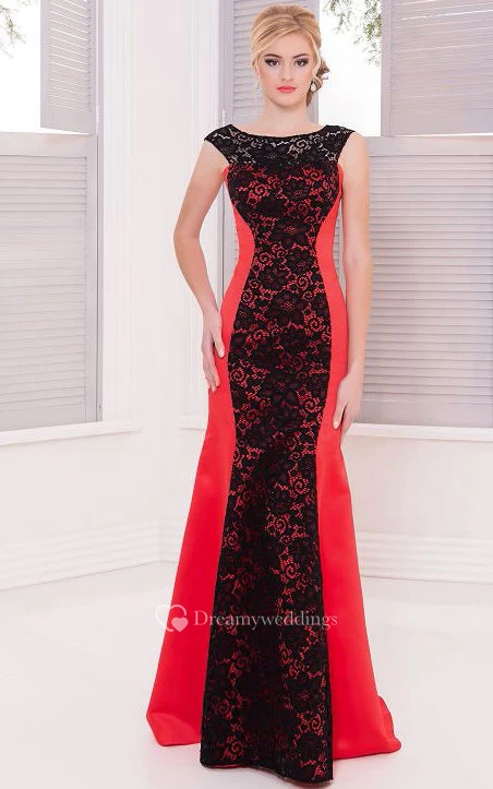 A-Line Sweep Jewel Short Sleeve Satin Lace Flower(S) Lace-Up Dress