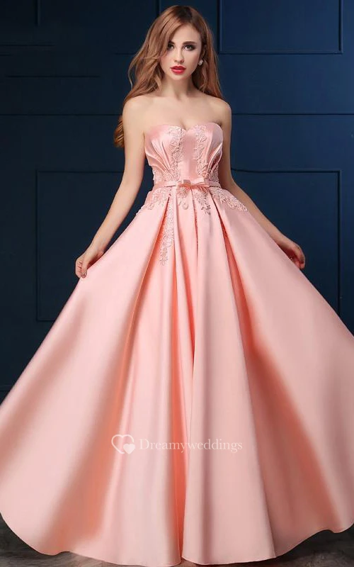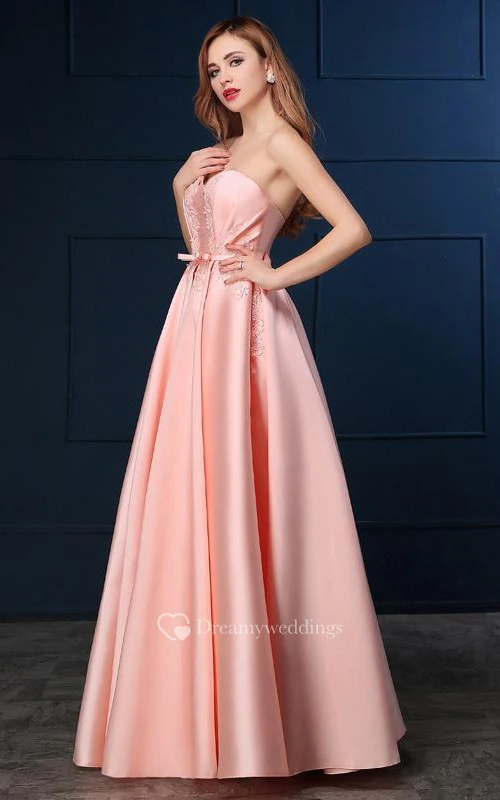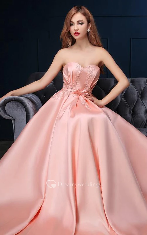 A-Line Sweetheart Appliques Bowknot Lace-Up Prom Dress