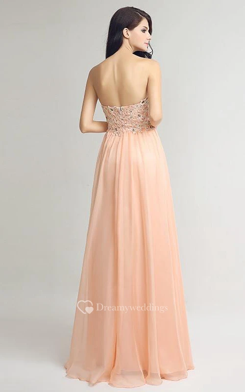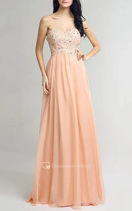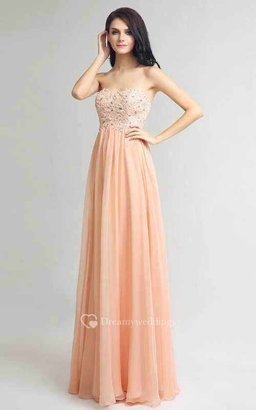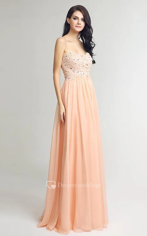 A-Line Sweetheart Appliques Crystal Sequins Long Prom Dress