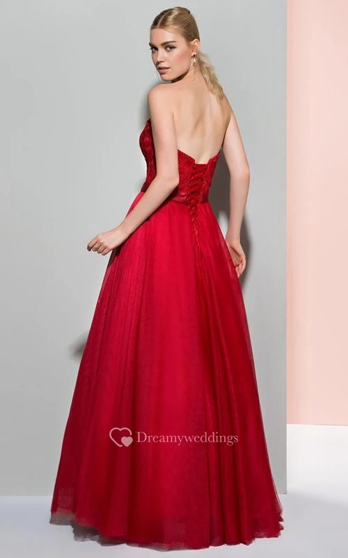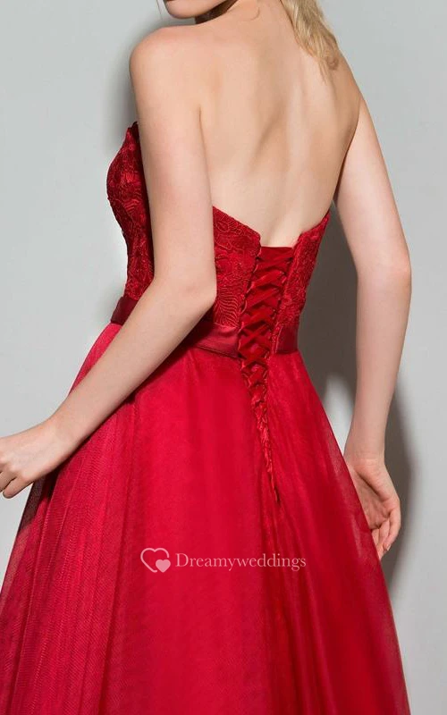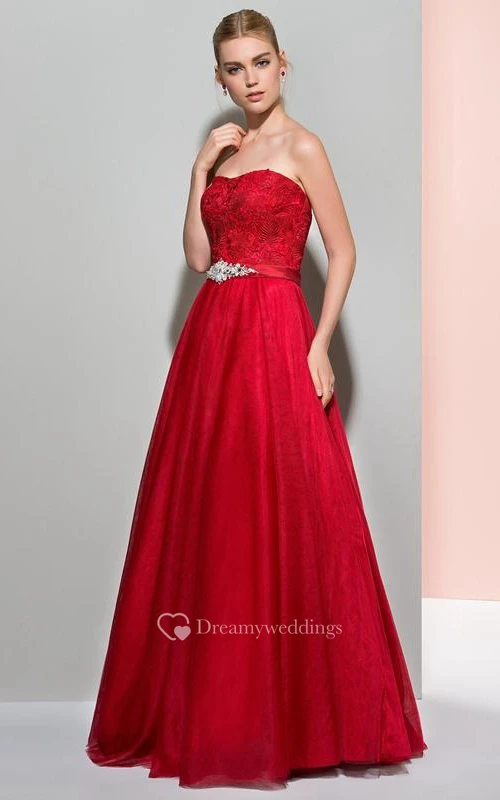 A-Line Sweetheart Beading Lace Sashes Floor-Length Prom Dress