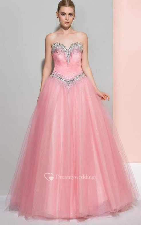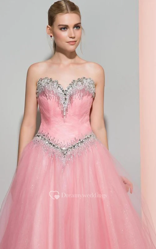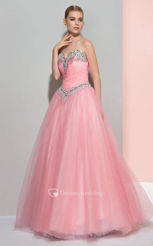 A-Line Sweetheart Beading Sequins Floor-Length Prom Dress