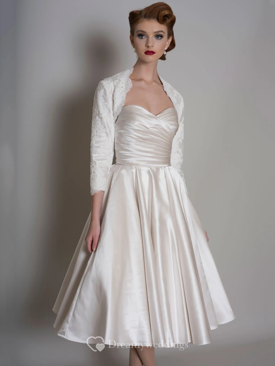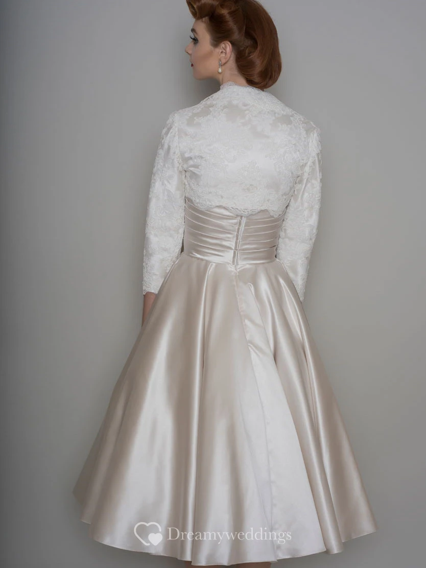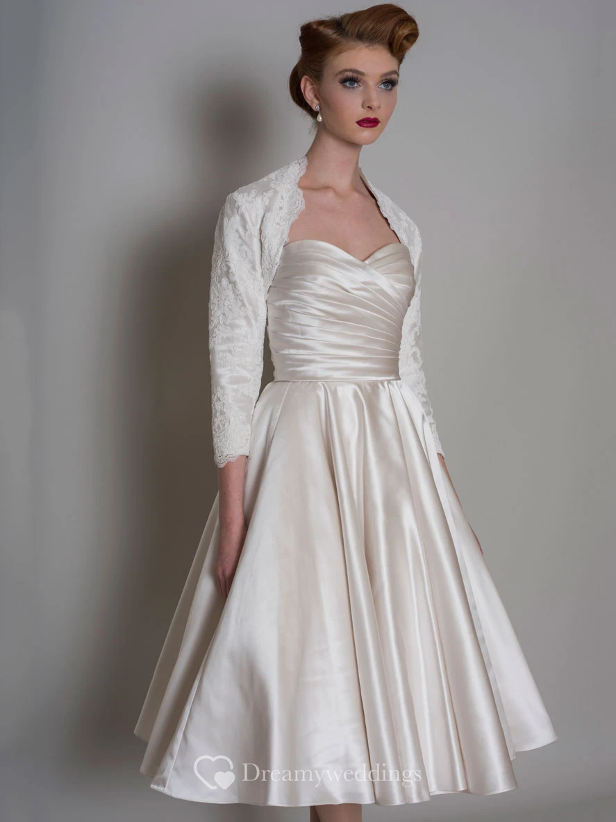 A-Line Sweetheart Criss-Cross Midi Satin Wedding Dress With Cape