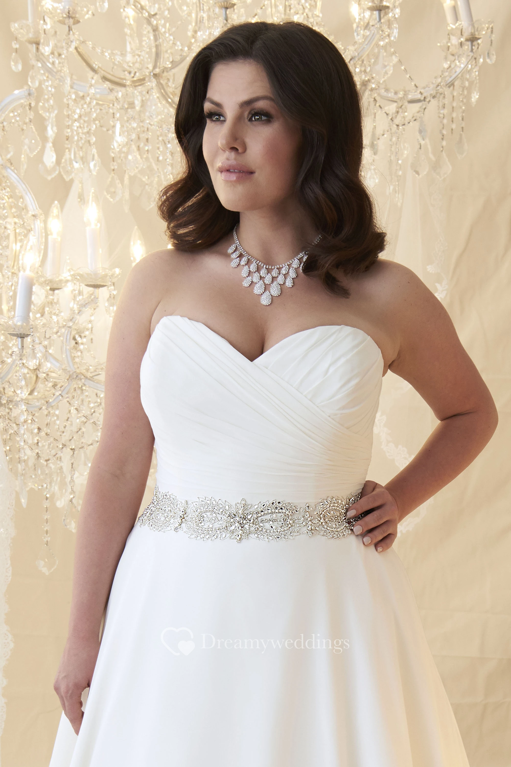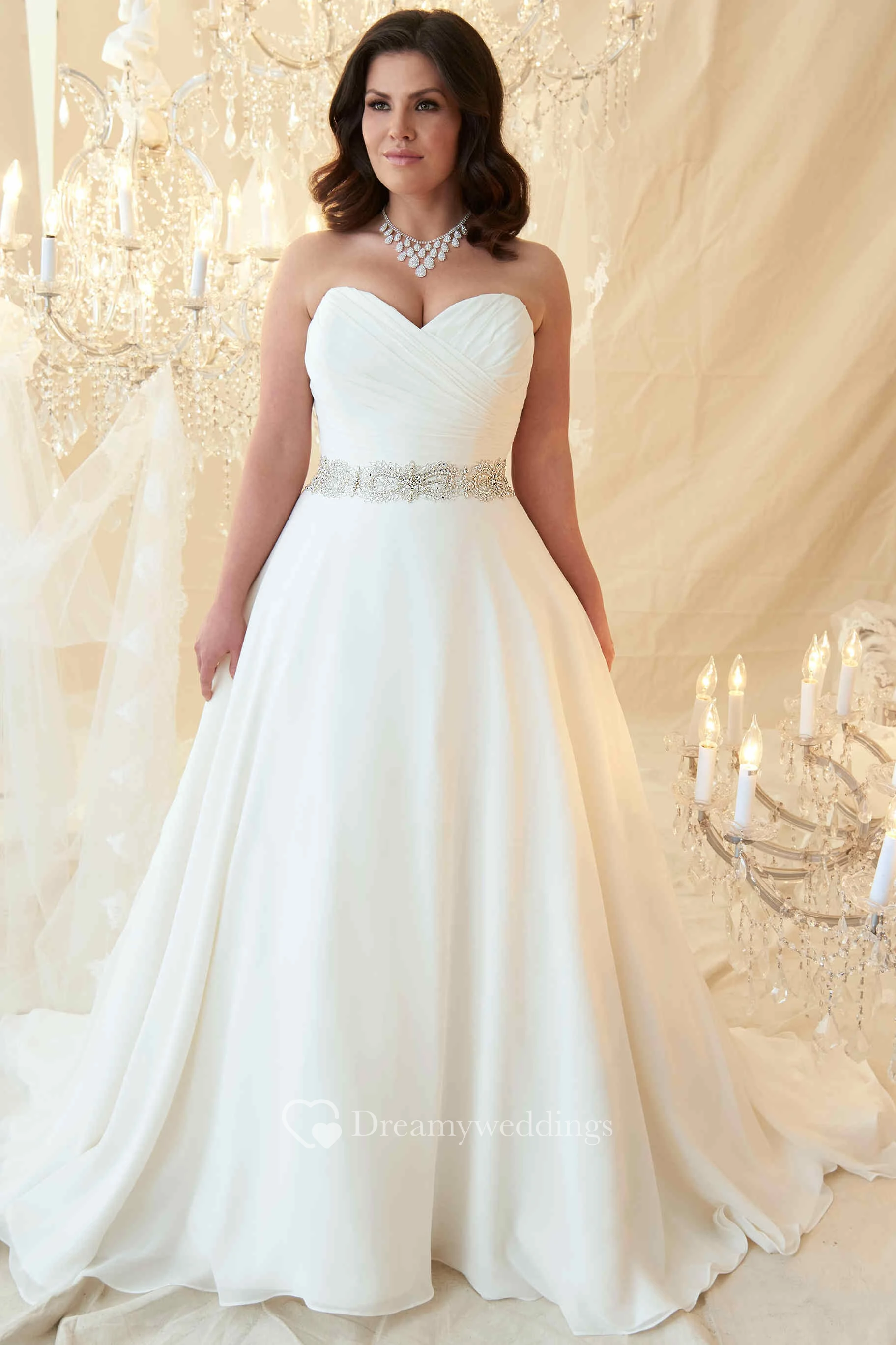 A-Line Sweetheart Jeweled Chiffon Plus Size Wedding Dress With Criss Cross And Zipper