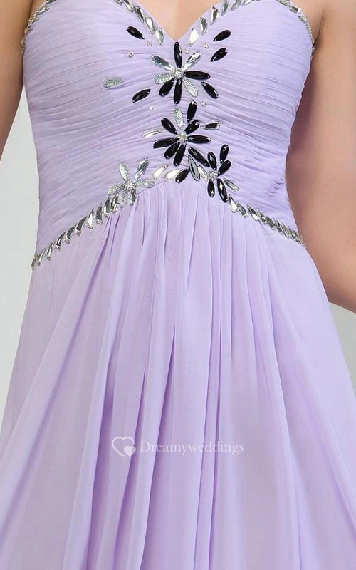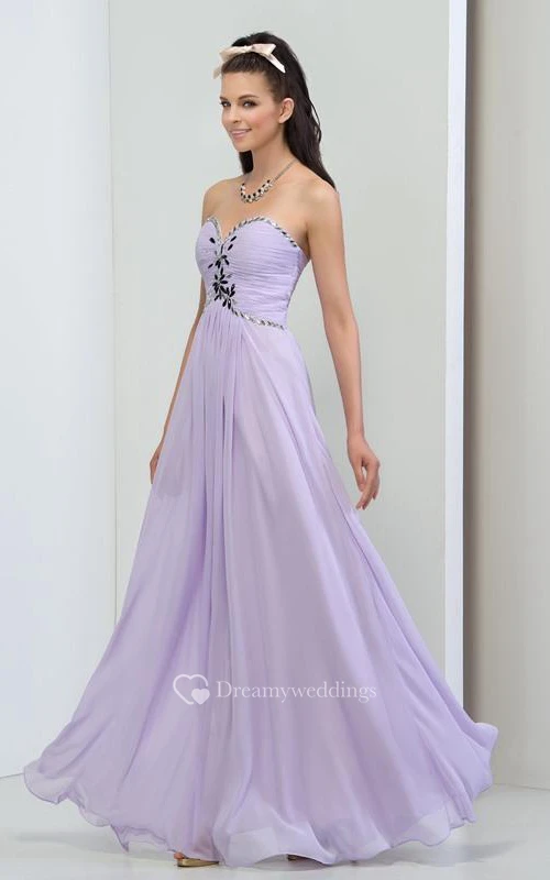 A-Line Sweetheart Pleats Beaded Long Prom Dress