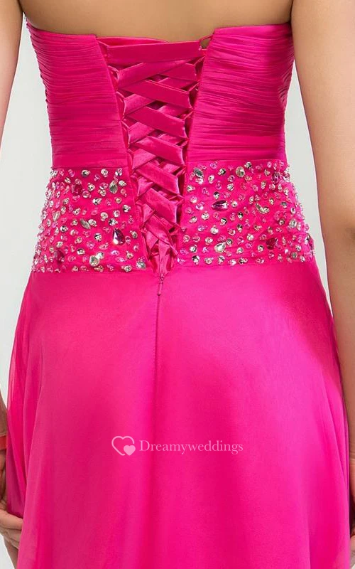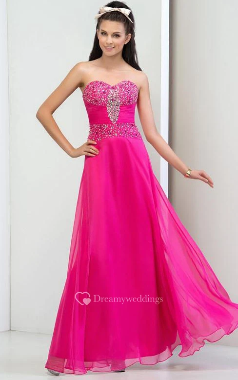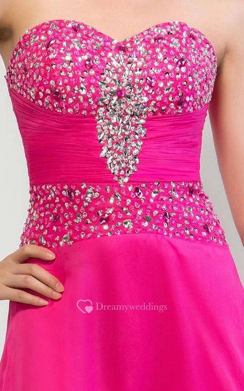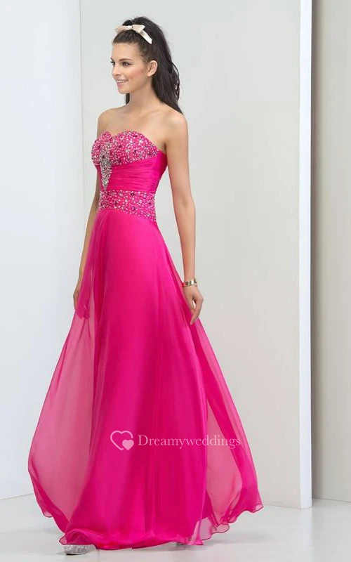 A-Line Sweetheart Pleats Sequins Prom Dress