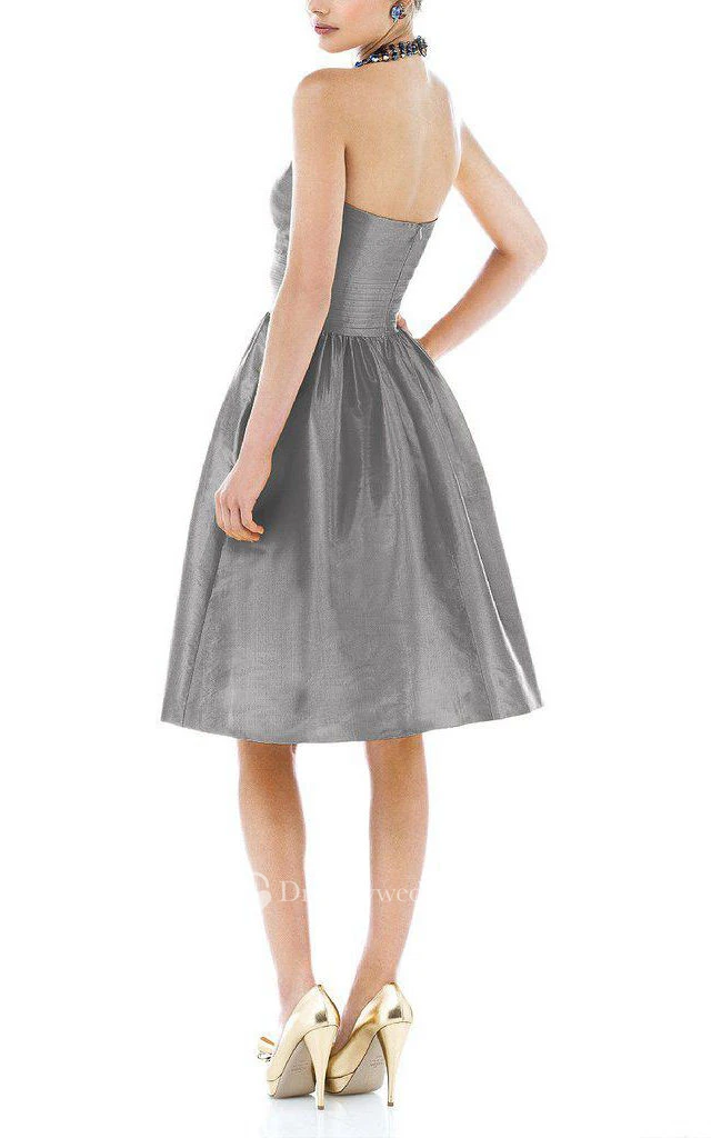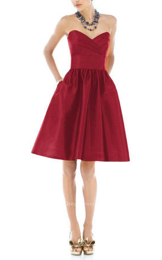 A-line Sweetheart Satin Knee-length Dress with Ruching
