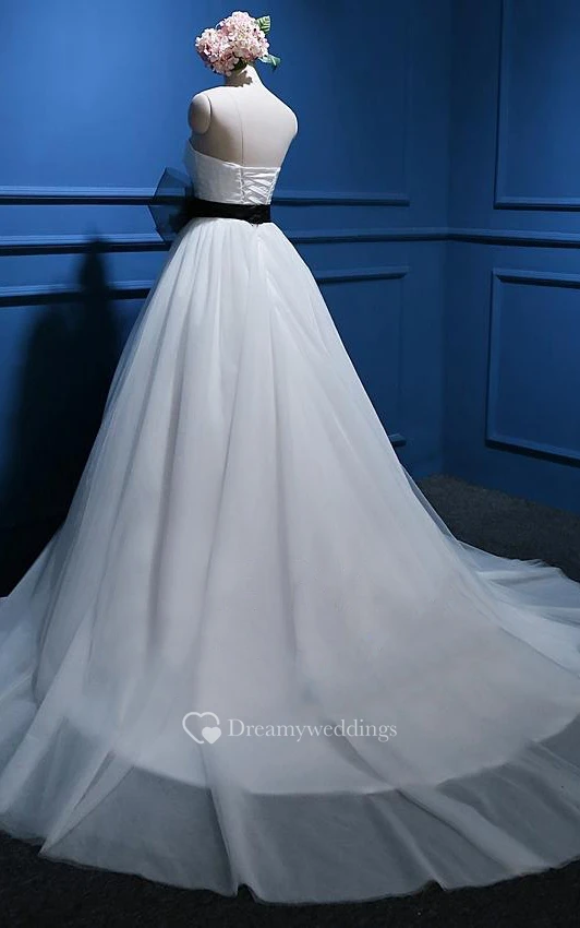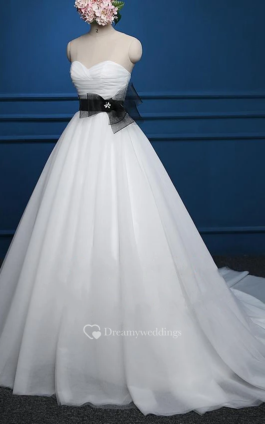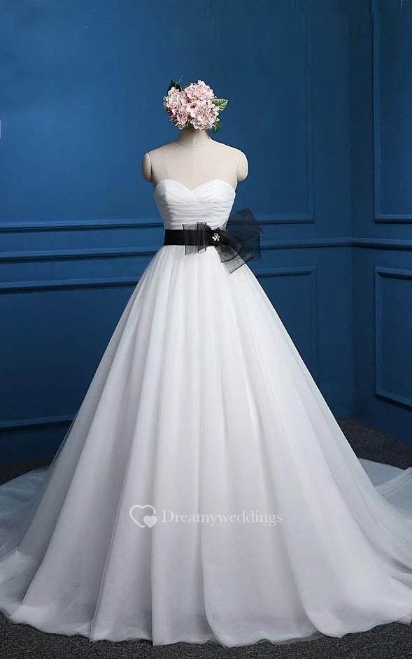 A-Line Sweetheart Sleeveless Cap Ribbon Tulle Dress