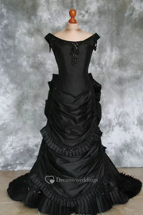 A-Line Taffeta Bateau Short Sleeve Floor-length Sweep Train Wedding Dress with Ruffles Ruching and Tiers